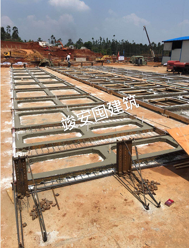 服務(wù)熱線: 四川竣安囤建筑工程有限公司為專(zhuān)業(yè)預(yù)應(yīng)力拱板施工公司,公司注冊(cè)資本為1000萬(wàn)元。公司經(jīng)營(yíng)范圍:住宅房屋建筑、房屋建筑工程、市政公用工程、土石方工程服務(wù)、防水防腐保溫工程、鋼結(jié)構(gòu)工程、橋梁工程、公路交通工程、地基基礎(chǔ)工程、園林綠化工程施工、水利水電工程、建筑裝飾工程、建筑勞務(wù)分包、砼結(jié)構(gòu)構(gòu)件制造、預(yù)應(yīng)力工程專(zhuān)業(yè)承包。 公司現(xiàn)有專(zhuān)業(yè)技術(shù)人員22人,均從事預(yù)應(yīng)力拱板施工超過(guò)10余年,技術(shù)力量強(qiáng)大,現(xiàn)場(chǎng)施工經(jīng)驗(yàn)豐富,能適應(yīng)各種預(yù)應(yīng)力拱板施工,專(zhuān)業(yè)技術(shù)工人500余人,專(zhuān)業(yè)隔板施工人員60人,木工120人,鋼筋工90人,混凝土工150人,專(zhuān)業(yè)電工、焊工20余人,專(zhuān)業(yè)張拉機(jī)手35人,專(zhuān)業(yè)拱板高空滑移就位人員50人,能進(jìn)行10余個(gè)工地同時(shí)施工。 公司先后承建了中儲(chǔ)糧荊門(mén)直屬庫(kù)掇刀分庫(kù)、中儲(chǔ)糧監(jiān)利直屬庫(kù)、 湖北省荊州川店儲(chǔ)備庫(kù)、湖北省咸寧儲(chǔ)備庫(kù)、湖南岳陽(yáng)儲(chǔ)備庫(kù)、廣安火車(chē)站中直糧庫(kù)、湖北江陵儲(chǔ)備庫(kù)、湖北孝感儲(chǔ)備庫(kù)、廣安武勝?lài)?guó)家糧庫(kù)、重慶秀山國(guó)家糧庫(kù)、云南玉溪紅塔區(qū)糧庫(kù)、云南西山區(qū)國(guó)家糧庫(kù)、云南曲靖陸良國(guó)家糧庫(kù)、云南江川糧庫(kù)、云南曲靖市糧庫(kù)、四川瀘縣嘉明糧庫(kù)、四川邛崍固驛種子庫(kù)、四川遂寧安居中直庫(kù)、云南石林糧倉(cāng)、云南楚雄牟定糧庫(kù)、云南綏江縣糧庫(kù)、四川廣安儲(chǔ)備庫(kù)、云南盈江拆舊建新糧庫(kù)、貴州畢業(yè)糧庫(kù)、云南嵩明糧庫(kù)、重慶南川儲(chǔ)備庫(kù)、云南石林糧庫(kù)、遂寧直屬庫(kù)安居分庫(kù)、云南祿勸糧庫(kù)、綿陽(yáng)三臺(tái)直屬庫(kù)、重慶渝西南糧庫(kù)、重慶墊江儲(chǔ)備庫(kù)、重慶永川儲(chǔ)備庫(kù)、重慶梁平儲(chǔ)備庫(kù)、重慶忠縣儲(chǔ)備庫(kù)、重慶江津儲(chǔ)備庫(kù)、重慶黔江儲(chǔ)備庫(kù)、黔江軍糧站、成都新都儲(chǔ)備庫(kù)、四川彭州儲(chǔ)備庫(kù)、四川蒙陽(yáng)儲(chǔ)備庫(kù)、四川什邡儲(chǔ)備庫(kù)、四川遂寧儲(chǔ)備庫(kù)、廣安回龍儲(chǔ)備庫(kù)、達(dá)州開(kāi)江物流園儲(chǔ)備庫(kù)、大理巍山儲(chǔ)備庫(kù)、大理云龍儲(chǔ)備庫(kù)、大理祥云儲(chǔ)備庫(kù)、云南威信儲(chǔ)備庫(kù)、昆明祿勸儲(chǔ)備庫(kù)、普洱景東儲(chǔ)備庫(kù)、臨滄雙江儲(chǔ)備庫(kù)、昭通大關(guān)儲(chǔ)備庫(kù)、楚雄南華儲(chǔ)備庫(kù),庫(kù)房跨度24米。 公司專(zhuān)業(yè)承接預(yù)應(yīng)力拱板板制作,采用空中預(yù)制施工工藝,僅需在室內(nèi)地面進(jìn)行拱板隔板預(yù)制。重點(diǎn)在高空利用原有部分圈梁進(jìn)行加固改造形成張拉臺(tái)座,完成下弦板預(yù)應(yīng)力張拉,一次性完成拱板屋架混凝土澆筑,待拱板屋架整體砼達(dá)到設(shè)計(jì)強(qiáng)度時(shí),實(shí)施放張,用千斤頂頂起拱板放置專(zhuān)用滑輪車(chē)上,運(yùn)用卷?yè)P(yáng)機(jī)在水平圈梁上滑移至設(shè)計(jì)安裝位置。本工藝不需搭設(shè)滿堂腳手架(僅局部搭設(shè)),不需大型機(jī)械吊裝,不需大型堆碼場(chǎng)地,比地下預(yù)制成本低,安全可靠。比滿堂腳手架耗材少,是一種經(jīng)濟(jì)實(shí)用型工藝。